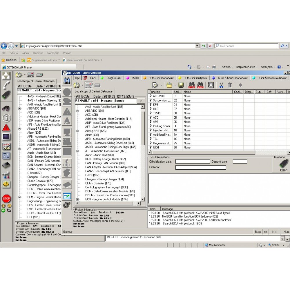Interfejs diagnostyczny: Renault DDT2000+ rel. 2,1 (Renault, Nissan, Dacia) modele 1996-2007