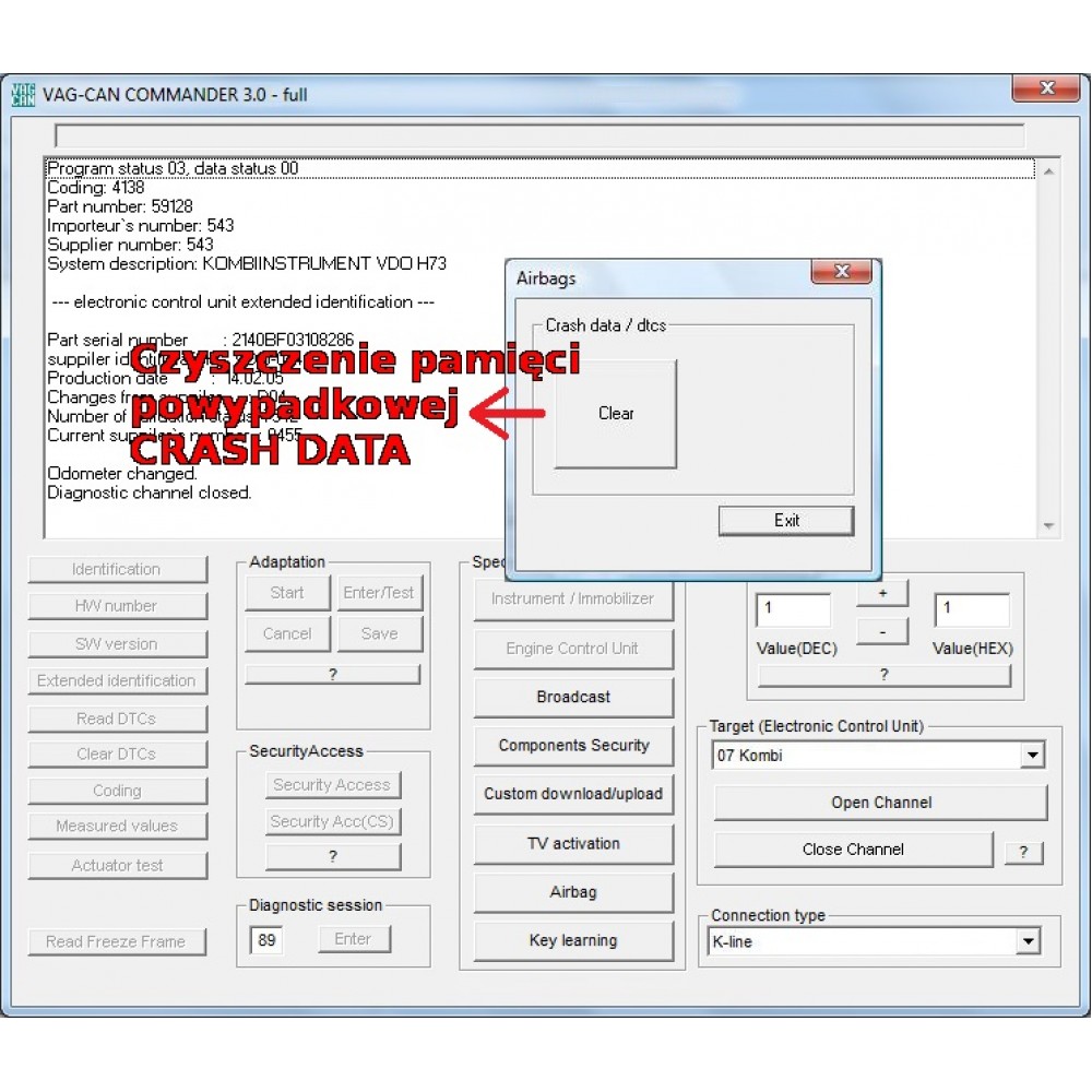 - Pełne zerowanie pamięci CRASH DATA (pamięć powypadkowa)
