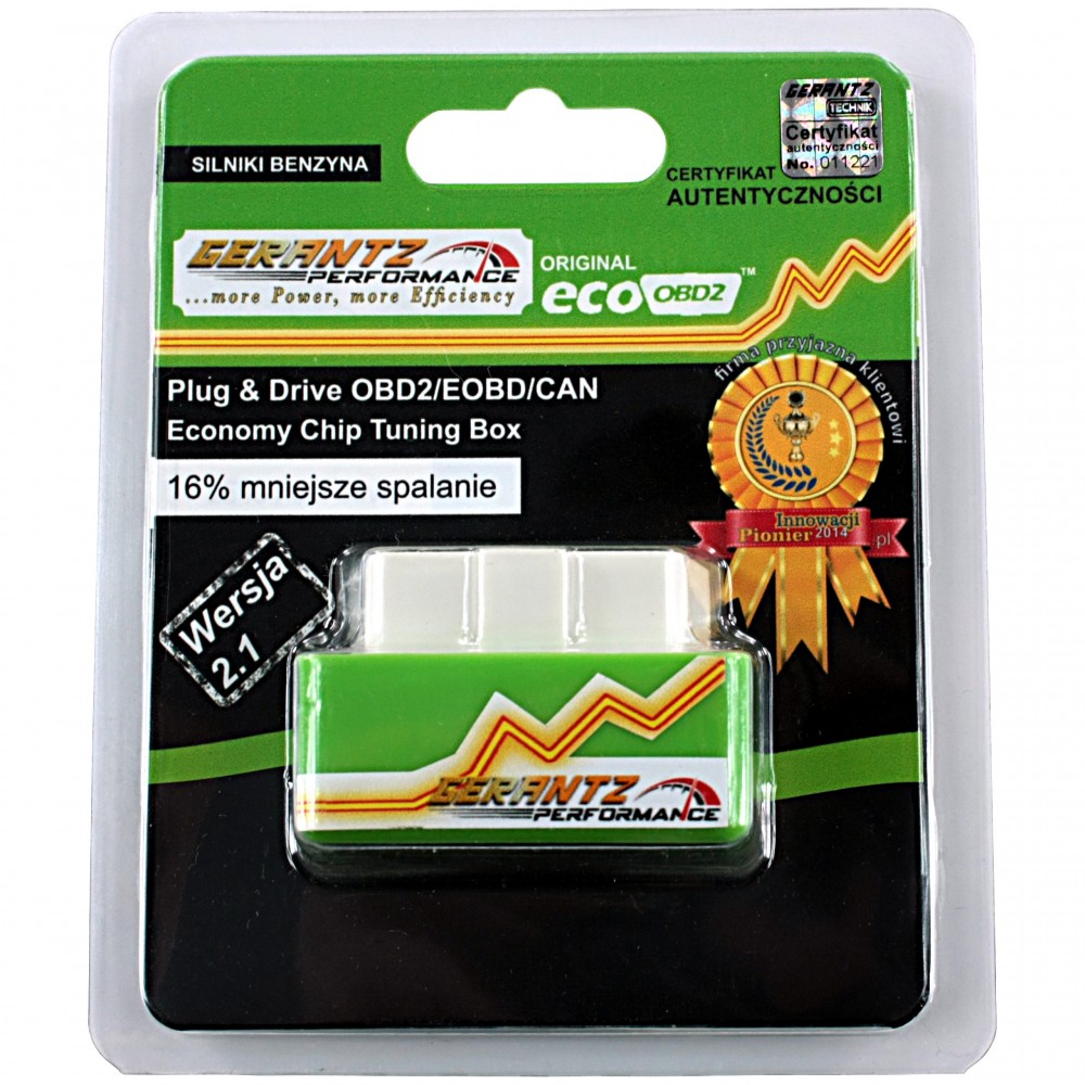 Jest to Chip, który jest podłączany do gniazda OBD2 w celu zwiększenia wydajności pracy silnika pojazdu co wiąże się z obniżeniem zużycia paliwa. Urządzenie to nie przekracza wymagań producenta oraz działa tylko w granicach tolerancji danego silnika. Jest prosty w użyciu i pozwala na całkowicie bezpieczną formę tuningu. Chip Eco OBD2 to produkt wysokiej jakości, drukowany w technice SMD.