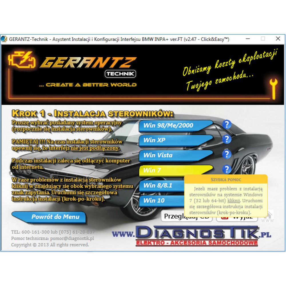 (instrukcje, lokalizacje złącz diagnostycznych w poszczególnych autach, porady diagnostyczne, w tym: kasowanie kontrolek inspekcji serwisowych i olejowych, kody błędów.) oraz nasz autorski program: Asystent Instalacji i Konfiguracji Urządzenia w wersji 2.47, z TECHNOLOGIĄ Click&Easy™